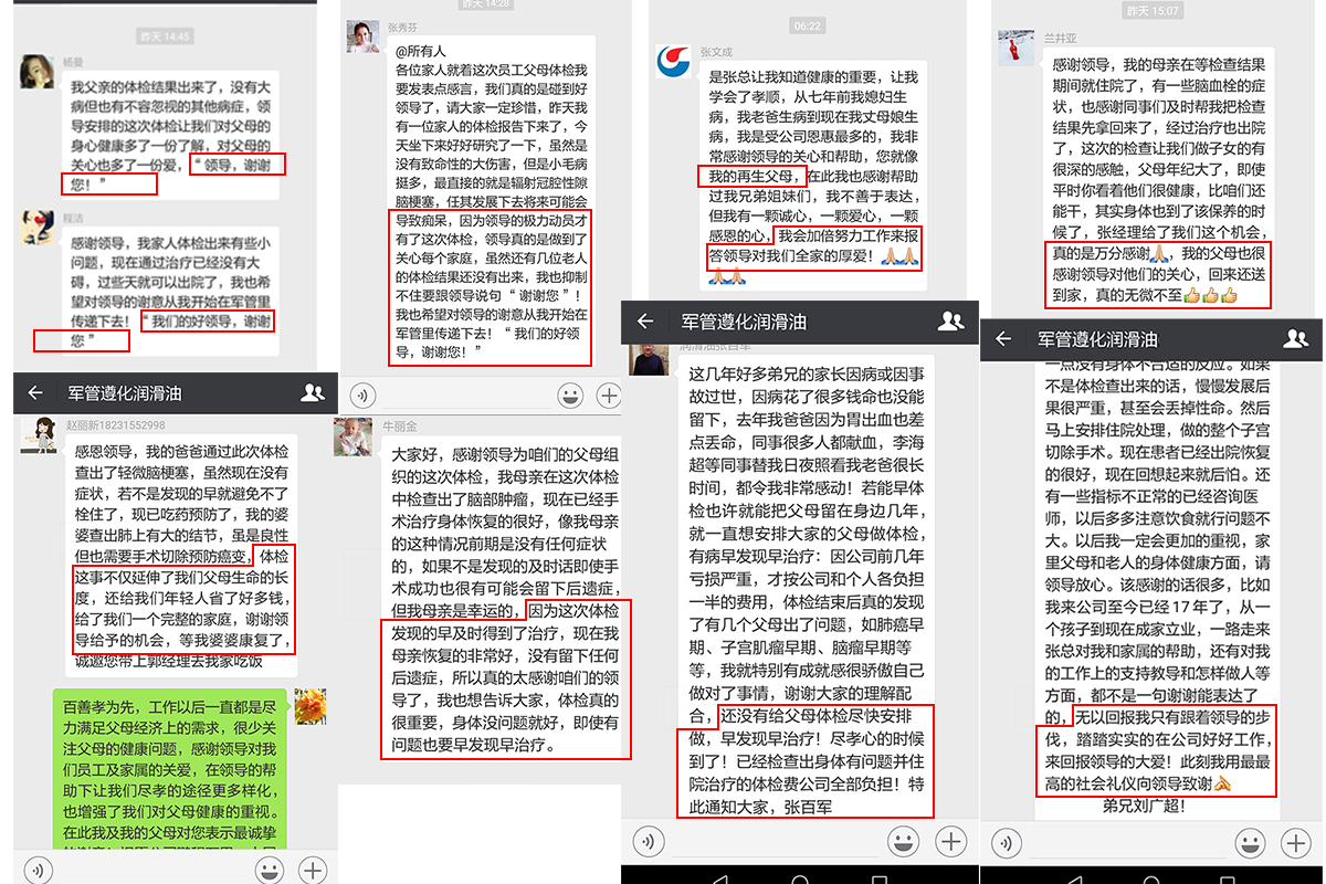 自從2018年相關(guān)數(shù)據(jù)顯示公司已經(jīng)扭轉(zhuǎn)連續(xù)多年虧損的狀態(tài),總經(jīng)理張百軍首先想到的是——公司員工的健康問題,于2018年3月組織全體員工體檢,對(duì)于體檢張百軍總經(jīng)理要求不能敷衍了事,要針對(duì)全體員工的情況,制定相應(yīng)的體檢項(xiàng)目,幾經(jīng)周折最終選定在唐山人民醫(yī)院體檢中心做體檢工作。沒有想到員工的健康問題只是張總關(guān)心的問題之一,隨后張總召開中層領(lǐng)導(dǎo)會(huì)議提出給員工父母體檢的想法,隨著時(shí)間的流逝,父母的年齡在不斷的增長,身體狀況也是每況愈下,但是他們對(duì)自我身體的健康意識(shí)卻非常的薄弱。于是接下來開始動(dòng)員全體員工勸說父母參加公司組織的體檢活動(dòng),又指定專人去各個(gè)醫(yī)院了解針對(duì)老年人的體檢項(xiàng)目,全體員工各司其職進(jìn)行著前期的籌備工作,于2018年8月完成了公司所有員工父母的體檢工作,所有員工父母對(duì)張總此次給予大家的福利深感謝意。其中多名員工的父母在這次體檢中受益匪淺,及時(shí)將病情扼殺在搖籃之中,為此多名員工表達(dá)了對(duì)張總的感謝。